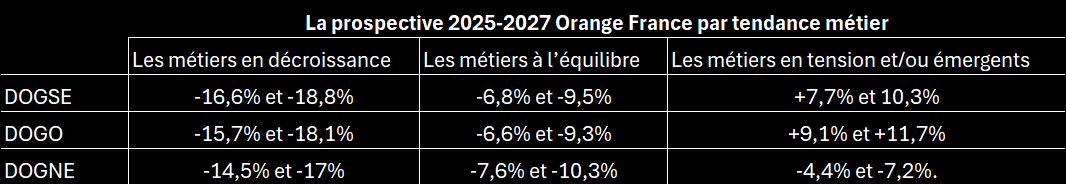 Orange se sert d’arguments commodes, comme un contexte économique difficile mais surtout de nouveaux défis technologiques, (migration du cuivre vers la fibre, softwarisation et virtualisation des réseaux, digitalisation et automatisation, développement de la Data et de l’IA), pour nous imposer une stratégie basée sur la recherche de la « meilleure efficacité opérationnelle ».